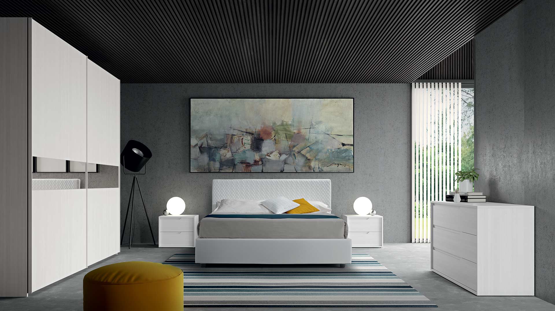 La zona notte caratterizzata da uno stile moderno punta principalmente a garantire funzionalità ed eleganza alla camera da letto matrimoniale, attraverso la realizzazione di mobili e complementi d’arredo essenziali, che evitano di appesantire la camera con elementi poco utili.