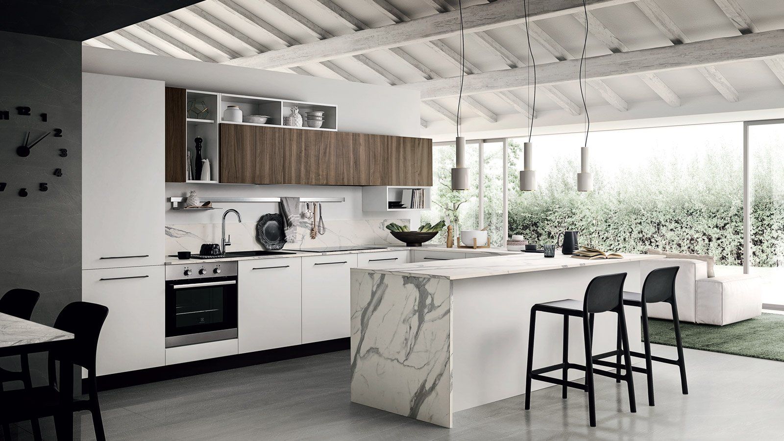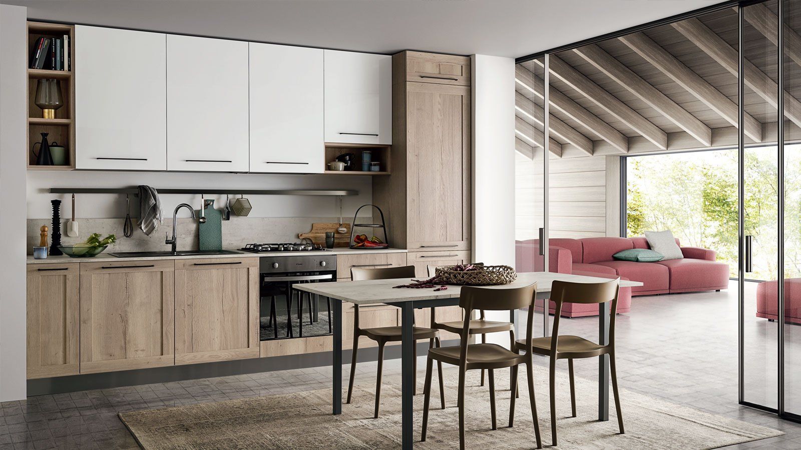 Le composizioni lineari e angolari sono ideali per gli ambienti cucina confinati, le composizioni a isola e penisola sono adatte per ambienti cucina-living di tipo open. In questo caso, la zona pranzo può essere informale e giovanile se si opta per il bancone snack con sgabelli, oppure tradizionalmente conviviale se realizzata con tavolo e sedie.
